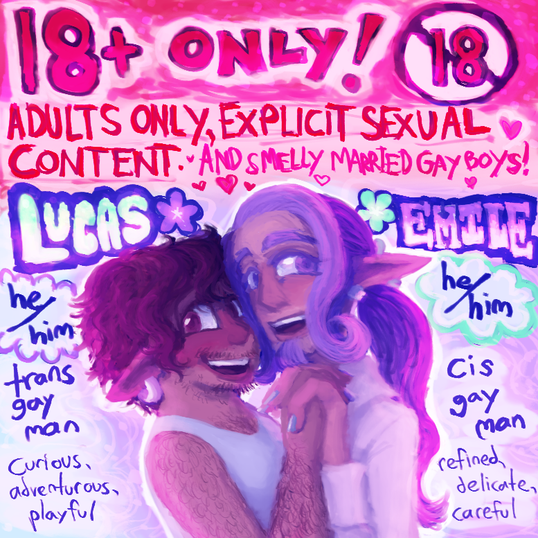 Elf husbands Emile and Lucas Reginalde perform their pleasant daily routine of looking themselves over in the bathroom mirror. Just like any other day, Lucas puts on his testosterone gel. However, this time, Emile picks up on a change in Lucas' scent, and the two find a very fun way to "stop and smell the roses"!